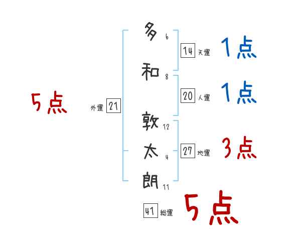 多和敦太朗さんの画数の鑑定結果