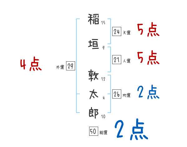 稲垣敦太郎さんの外運は29画の4つ星