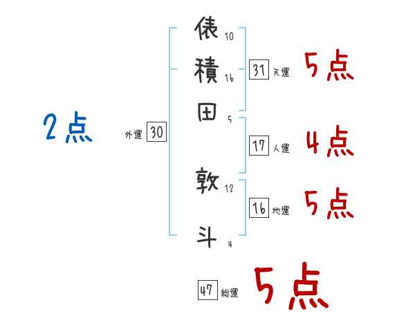 総運![]() | 俵積田敦斗さんの総運は47画の5つ星!実力が開花し発展する円満な人生。財に恵まれる。 あなたの人生を表す1番重要な運勢です。生涯を通じて影響する総合運となり、主に50歳以降の晩年期に影響を及ぼします。 |