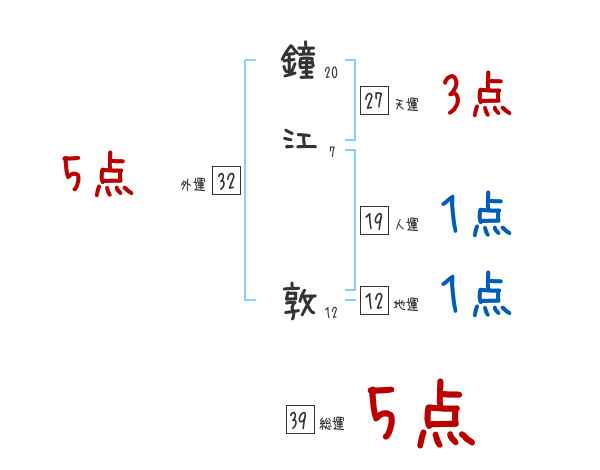 鐘江敦さんの画数の鑑定結果