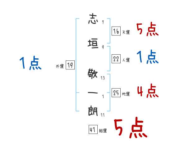 天運![]() | 志垣敬一朗さんの天運は16画の5つ星!人望が厚く大きく発展する。逆転成功が見える。 家系が持つ宿命的な運勢を表します。祖先から受け継いだ苗字ですので自分の力が及びません。家柄を象徴します。 |