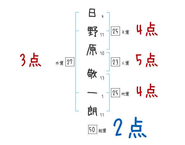 日野原敬一朗さんの画数の鑑定結果