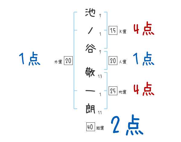 池ノ谷敬一朗さんの画数の鑑定結果