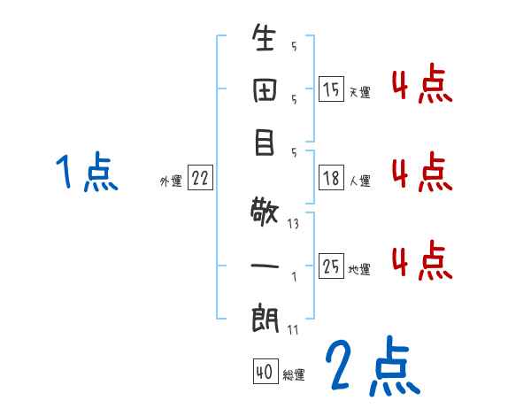 生田目敬一朗さんの画数の鑑定結果