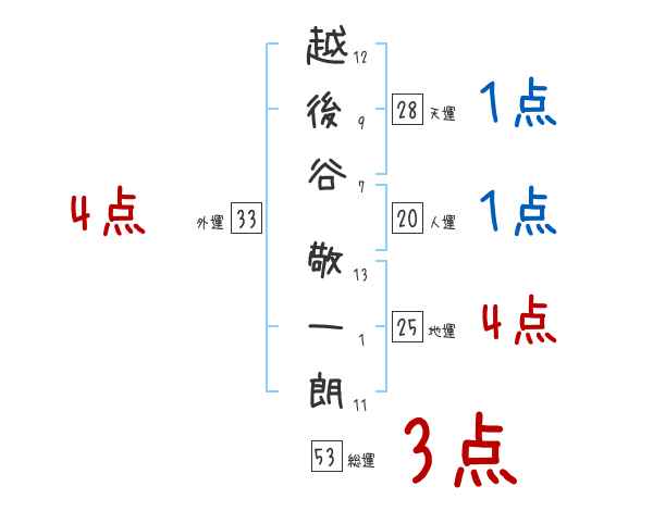越後谷敬一朗さんの画数の鑑定結果