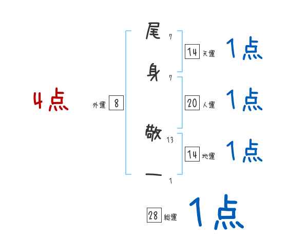 尾身敬一さんの画数の鑑定結果