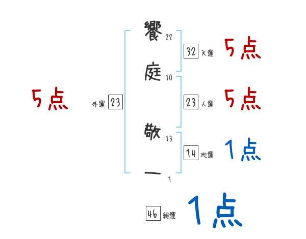 饗庭敬一さんの画数の鑑定結果