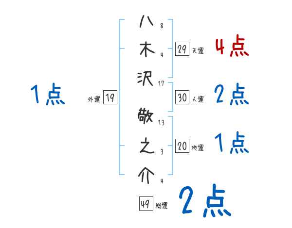 八木沢敬之介さんの画数の鑑定結果