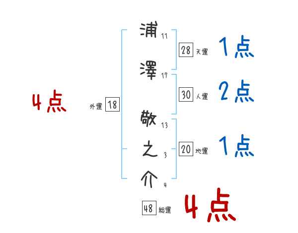 外運![]() | 浦澤敬之介さんの外運は18画の4つ星!情熱的で剛気。忍耐力があり信頼される。 生活面を象徴する運勢です。外部から受ける影響力を表し、結婚運、家庭運や職場、環境への順応性を表します。 |
