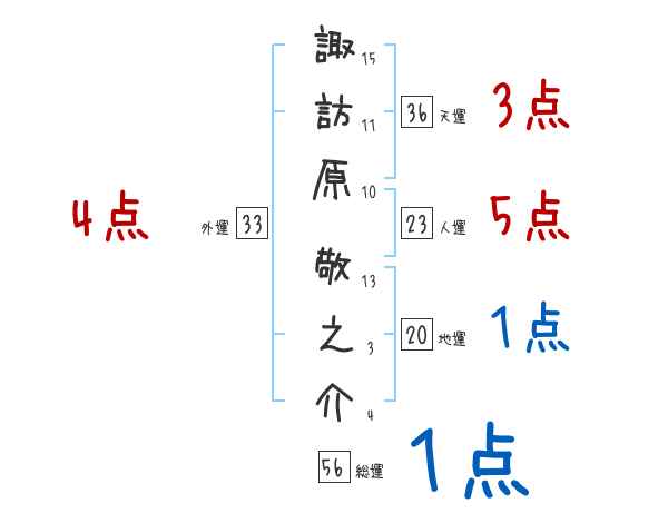 諏訪原敬之介さんの画数の鑑定結果