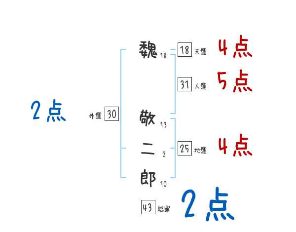魏敬二郎さんの画数の鑑定結果