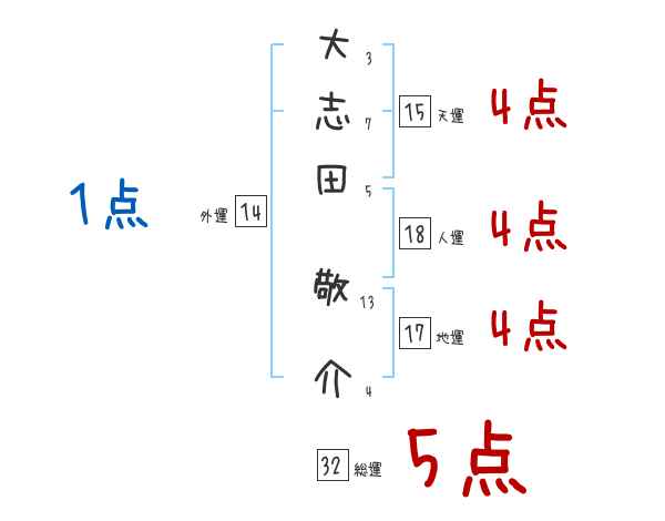 大志田敬介さんの画数の鑑定結果