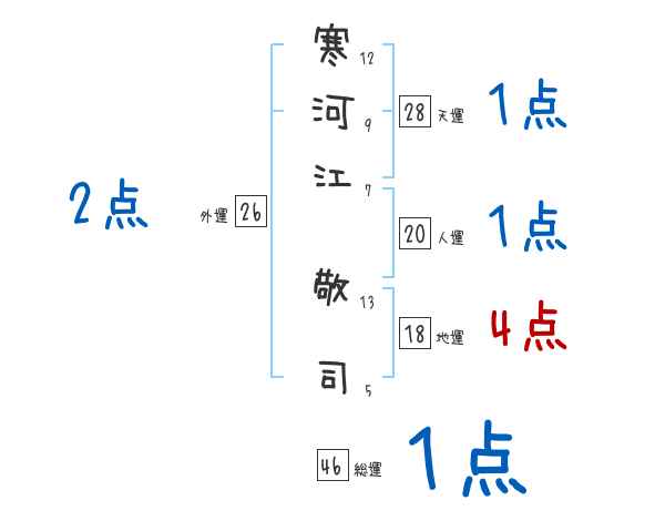 寒河江敬司さんの画数の鑑定結果