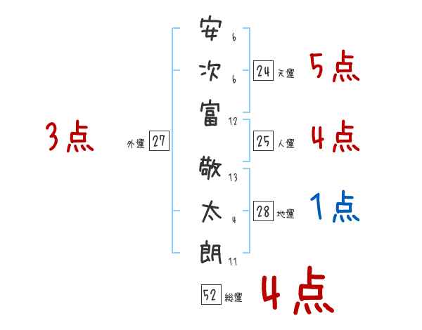 安次富敬太朗さんの画数の鑑定結果
