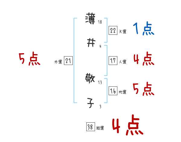 薄井敬子さんの画数の鑑定結果