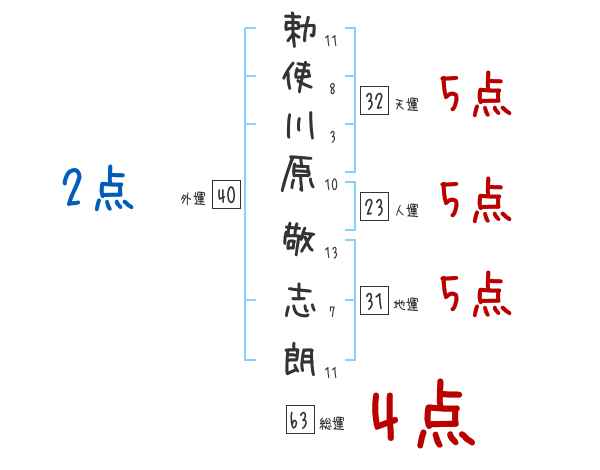 勅使川原敬志朗さんの画数の鑑定結果