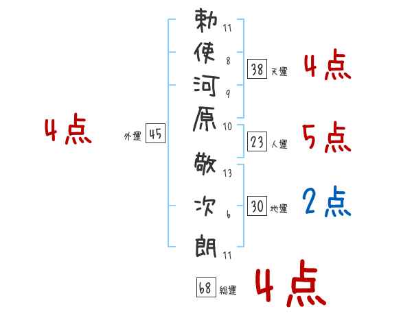 勅使河原敬次朗さんの画数の鑑定結果