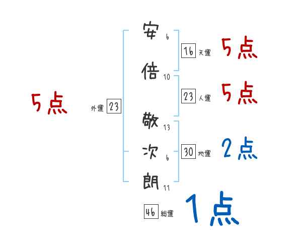 安倍敬次朗さんの画数の鑑定結果