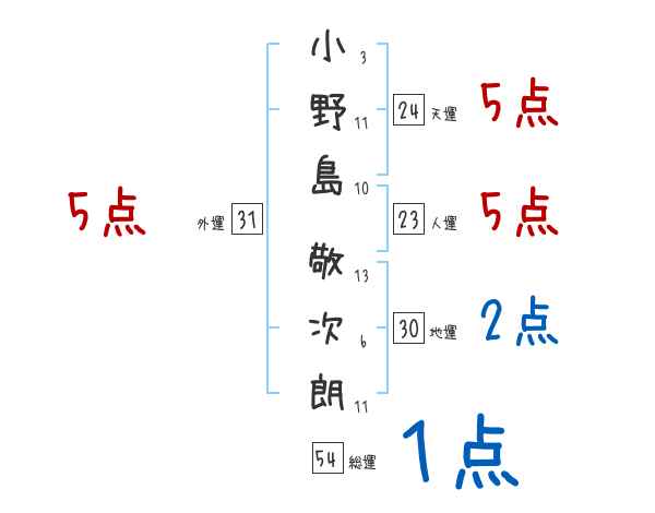 小野島敬次朗さんの画数の鑑定結果