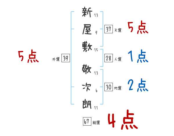 新屋敷敬次朗さんの画数の鑑定結果