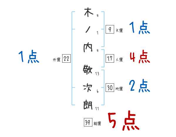 木ノ内敬次朗さんの画数の鑑定結果