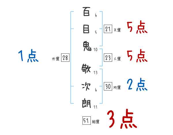 百目鬼敬次朗さんの画数の鑑定結果