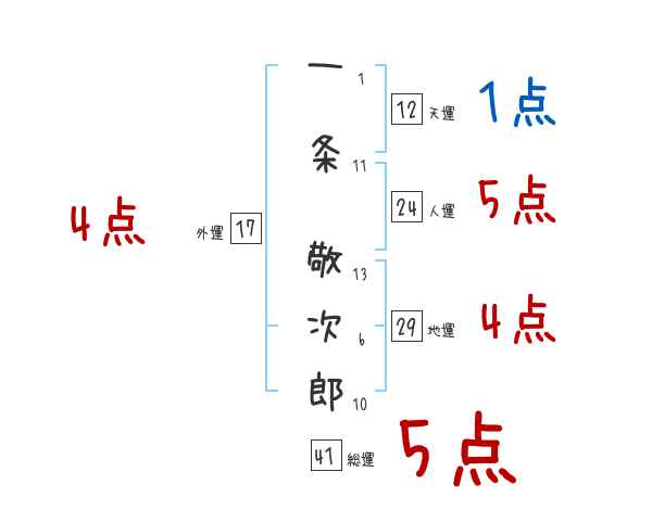 一条敬次郎さんの画数の鑑定結果