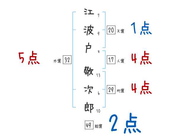 江波戸敬次郎さんの画数の鑑定結果