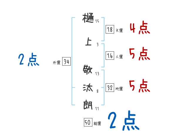 樋上敬汰朗さんの画数の鑑定結果