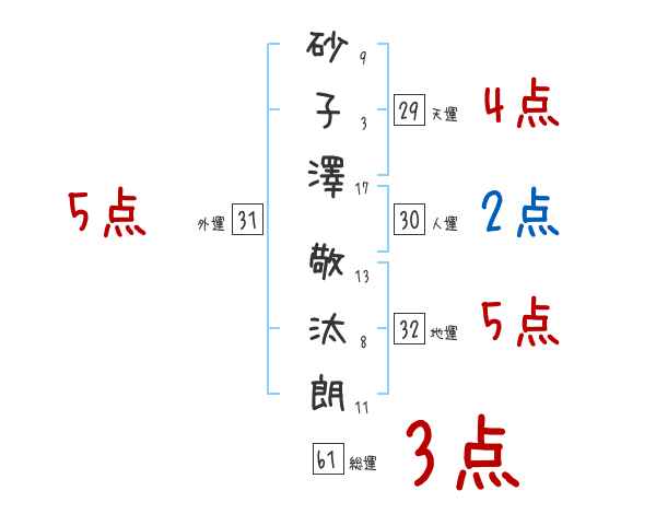 砂子澤敬汰朗さんの画数の鑑定結果