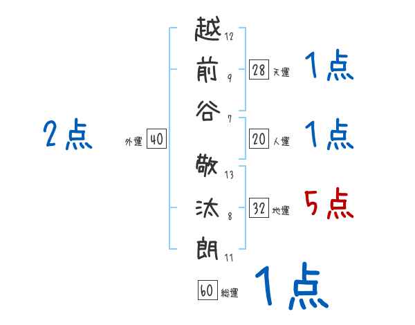 越前谷敬汰朗さんの画数の鑑定結果