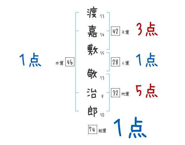 渡嘉敷敬治郎さんの画数の鑑定結果