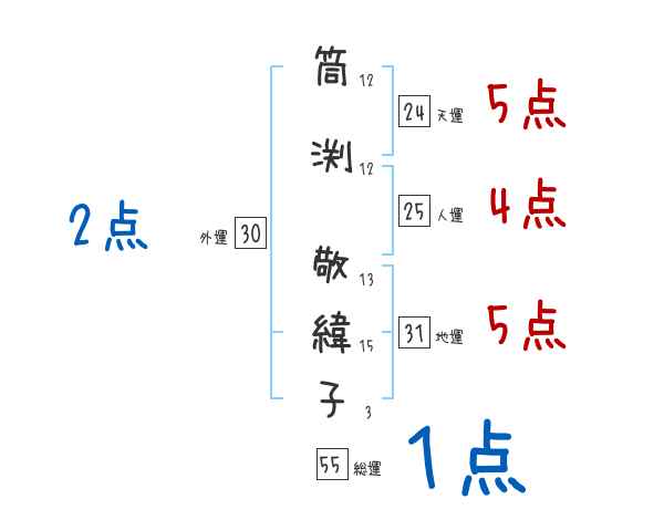 天運![]() | 筒渕敬緯子さんの天運は24画の5つ星!家庭運が良く順調な人生。金運にも恵まれる。 家系が持つ宿命的な運勢を表します。祖先から受け継いだ苗字ですので自分の力が及びません。家柄を象徴します。 |