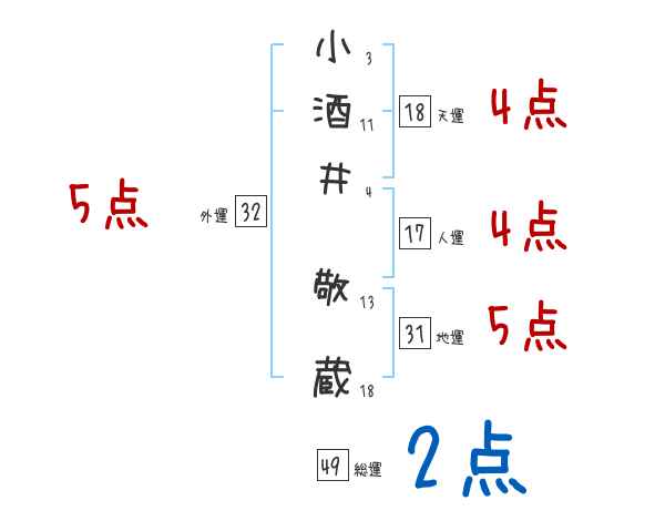 小酒井敬蔵さんの画数の鑑定結果