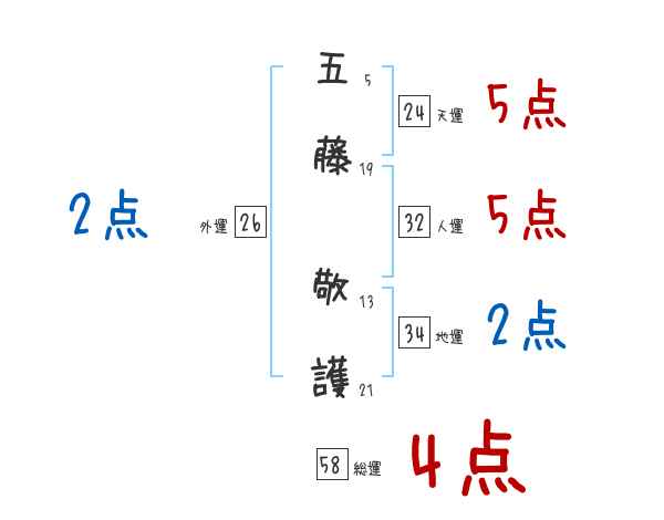五藤敬護さんの画数の鑑定結果