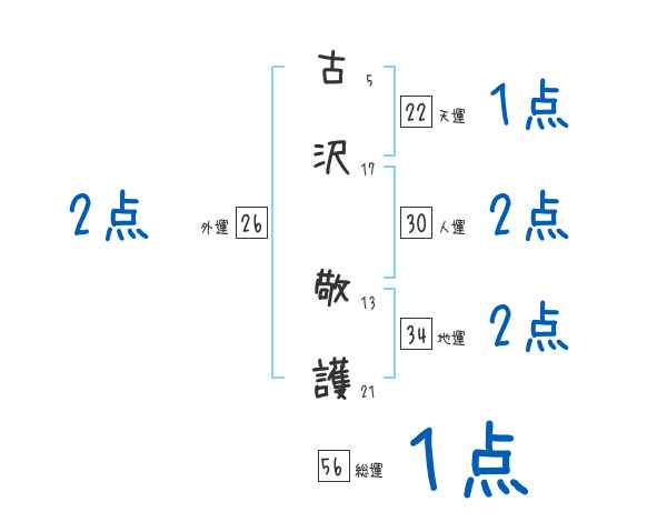 古沢敬護さんの画数の鑑定結果