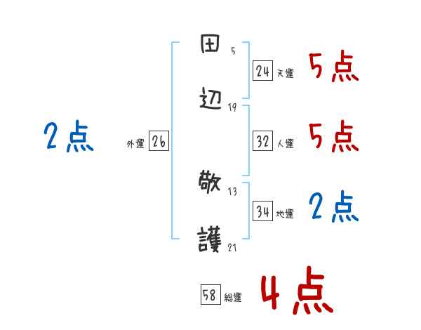 田辺敬護さんの画数の鑑定結果