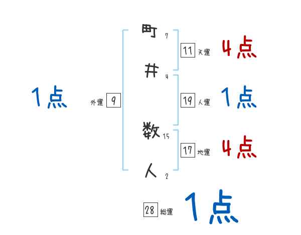 町井数人さんの画数の鑑定結果