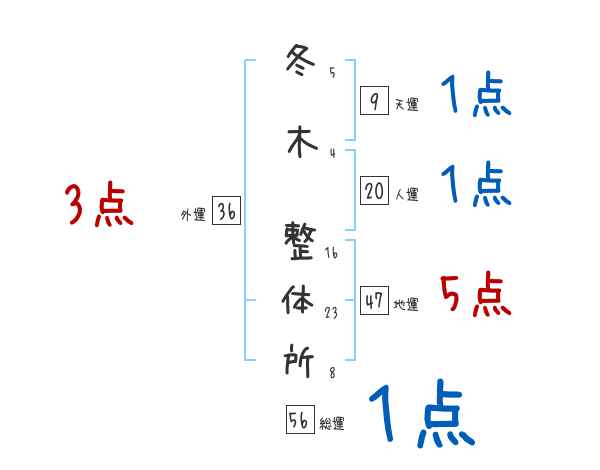 外運![]() | 冬木整体所さんの外運は36画の3つ星!先見性が豊かです。多少神経質で苦労することも。 生活面を象徴する運勢です。外部から受ける影響力を表し、結婚運、家庭運や職場、環境への順応性を表します。 |