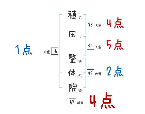 稙田整体院さんの画数の鑑定結果