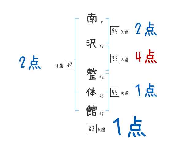 外運![]() | 南沢整体館さんの外運は49画の2つ星!不安定な性格で明暗がある人生。周りの人には支援されやすい。 生活面を象徴する運勢です。外部から受ける影響力を表し、結婚運、家庭運や職場、環境への順応性を表します。 |