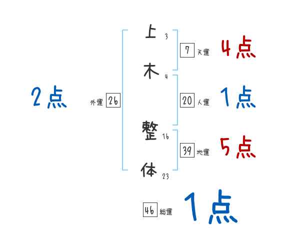 上木整体さんの画数の鑑定結果