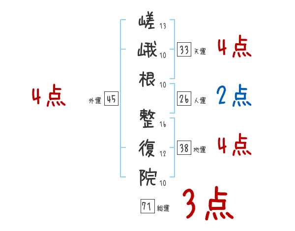 家系が持つ宿命的な運勢を表します。祖先から受け継いだ苗字ですので自分の力が及びません。家柄を象徴します。