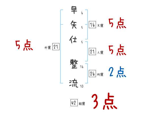 早矢仕整流さんの画数の鑑定結果