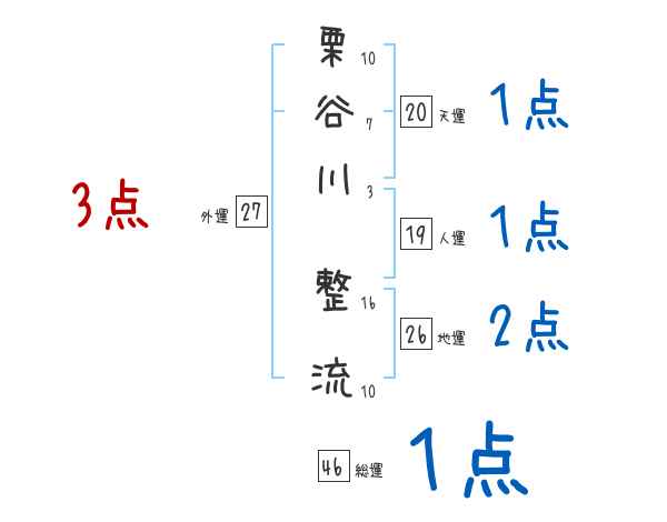 地運![]() | 栗谷川整流さんの地運は26画の2つ星!波瀾万丈かも。信頼できる人を大事にしましょう。 個性を表す基礎的な運勢です。性格形成や対人関係、行動力など家庭環境に影響されます。主に誕生してから20歳くらいまでの若年期の運勢を表します。 |