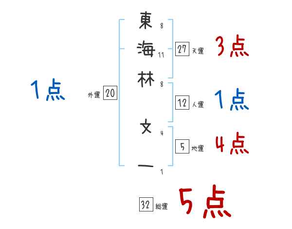 総運![]() | 東海林文一さんの総運は32画の5つ星!柔軟性があり成功する。チャンスが多く金運が良い。 あなたの人生を表す1番重要な運勢です。生涯を通じて影響する総合運となり、主に50歳以降の晩年期に影響を及ぼします。 |