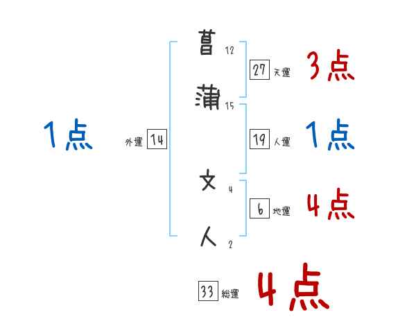 菖蒲文人さんの画数の鑑定結果