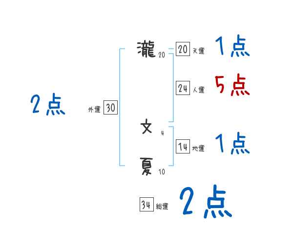 総運![]() | 瀧文夏さんの総運は34画の2つ星!独創性に優れるが、自尊心が強く災難に注意しましょう。 あなたの人生を表す1番重要な運勢です。生涯を通じて影響する総合運となり、主に50歳以降の晩年期に影響を及ぼします。 |