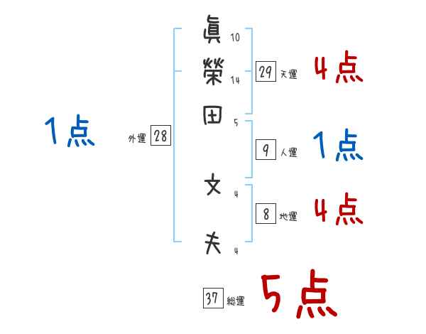 眞榮田文夫さんの画数の鑑定結果