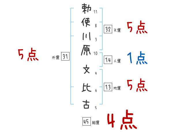 天運![]() | 勅使川原文比古さんの天運は32画の5つ星!柔軟性があり成功する。チャンスが多く金運が良い。 家系が持つ宿命的な運勢を表します。祖先から受け継いだ苗字ですので自分の力が及びません。家柄を象徴します。 |